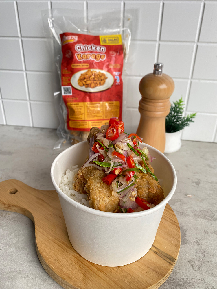 Chicken karaage bisa digoreng setengah matang lalu disimpan di kulkas. Saat sahur, tinggal panaskan dan sajikan sebagai rice bowl dengan saus teriyaki atau saus sambal.