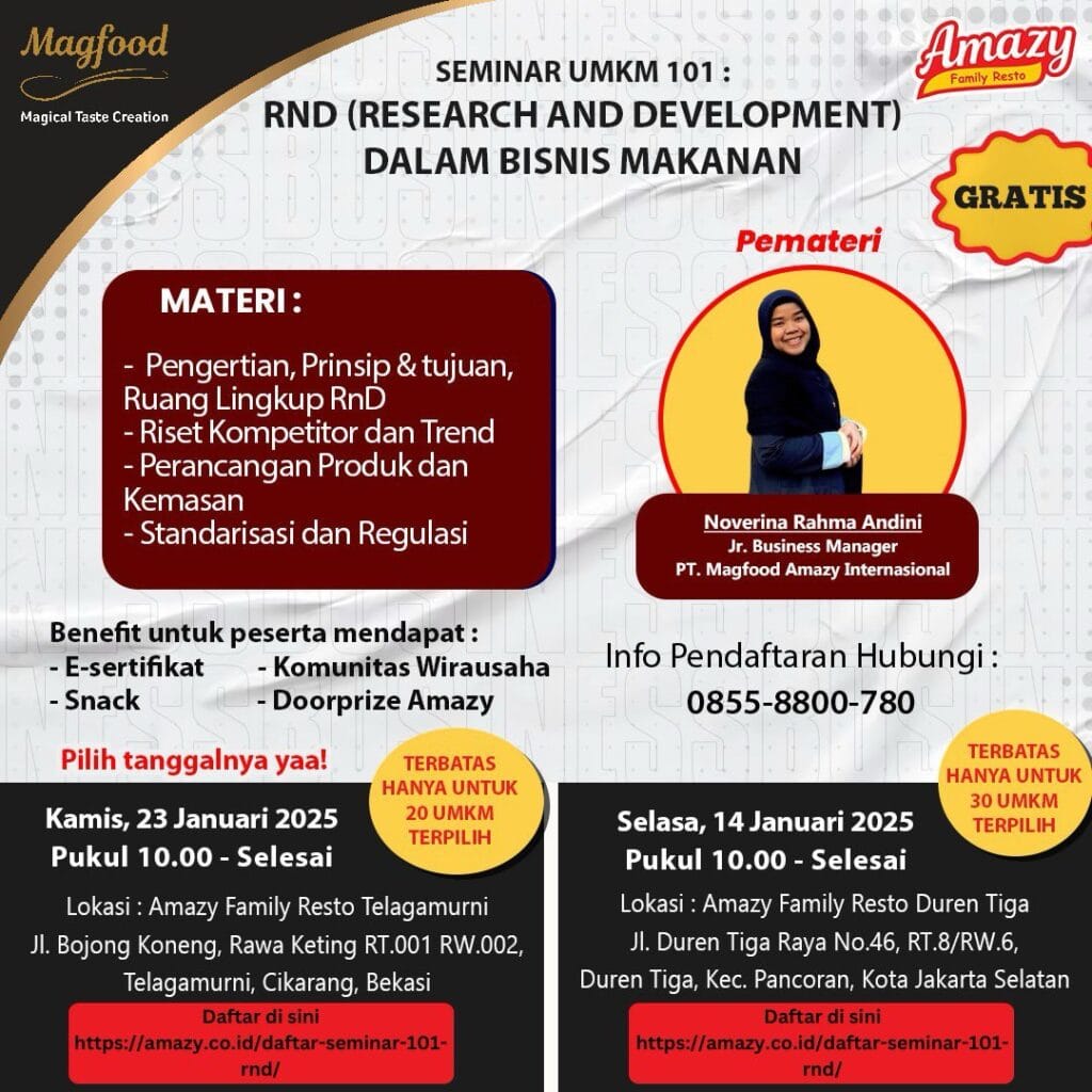 Ikuti Seminar UMKM 101: RnD (Research and Development) dalam Bisnis Makanan!