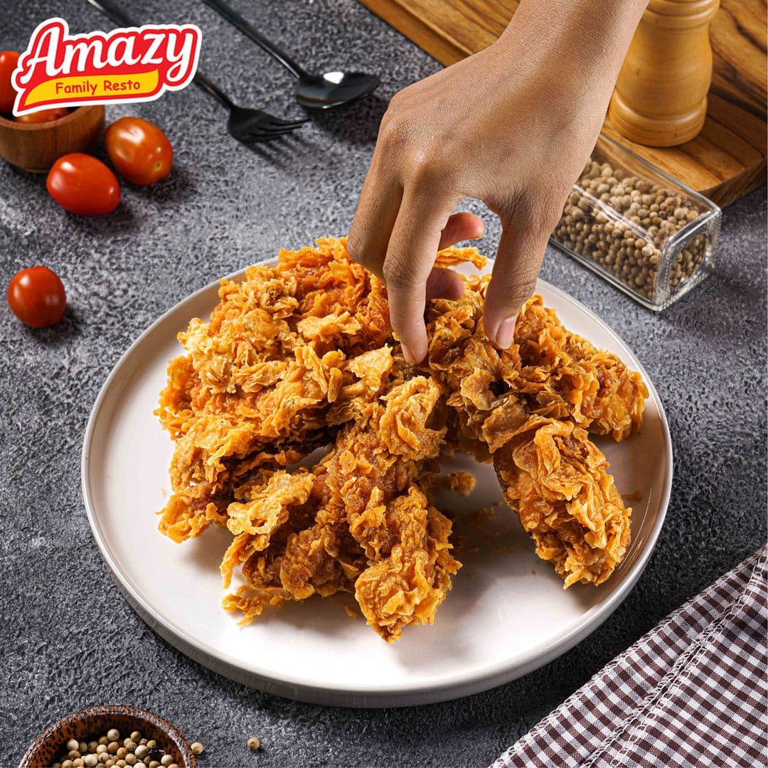 Amazy hanya menggunakan daging ayam pilihan dan minim lemak serta diolah tanpa bahan pengawet. Amazy juga memastikan ayam yang diolah selalu segar dan aman dikonsumsi. Ayam disembelih pada usia yang sesuai yaitu 8 – 9 minggu, dan tentunya bersertifikasi Halal. Selain itu, ayam melalui proses pembersihan dan pembuangan lemak sebelum diolah sehingga tidak perlu khawatir dengan lemak yang berlebih.