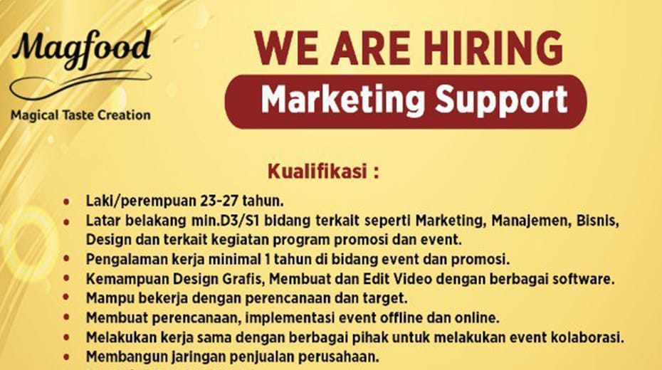 Bergabunglah dengan Tim PT. MagFood Inovasi Pangan!