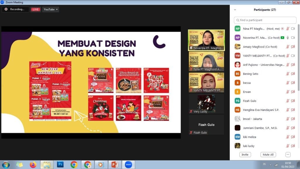 Strategi marketing online to offline dibutuhkan ketika Anda sebagai pengusaha makanan yang memiliki toko atau resto fisik, ingin menggunakan media sosial untuk promosi agar orang-orang bisa tergerak untuk melakukan transaksi di toko fisik Anda. Amazy mengangkat tema tersebut agar bisa memperkaya ilmu bisnis pengusaha makanan di seluruh Indonesia yang antusias mengikuti webinar pada 1 April 2023.